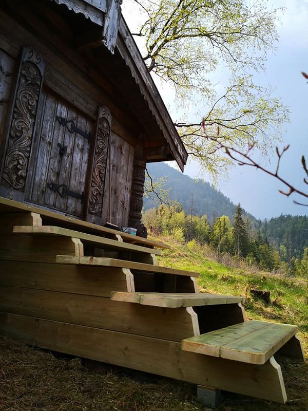 Oppsetting/bygg av ny stabur trapp. Bygget i tradisjonell stil.